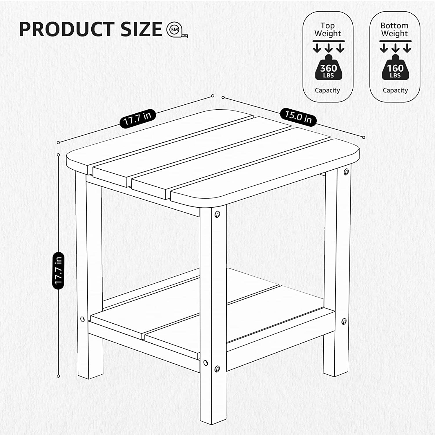 HDPE yan sehpalar, geri dönüştürülmüş HDPE plastikten yapılmıştır ve Adirondack Sandalyeler ile birlikte kullanılır. Çevre dostu, pas yok, kolay paket.